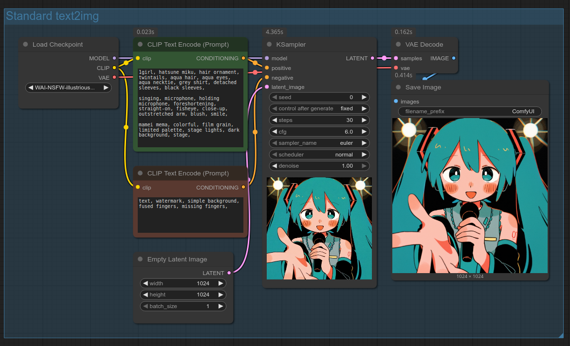 Стандартный воркфлоу для text2img в ComfyUI выглядит примерно так: